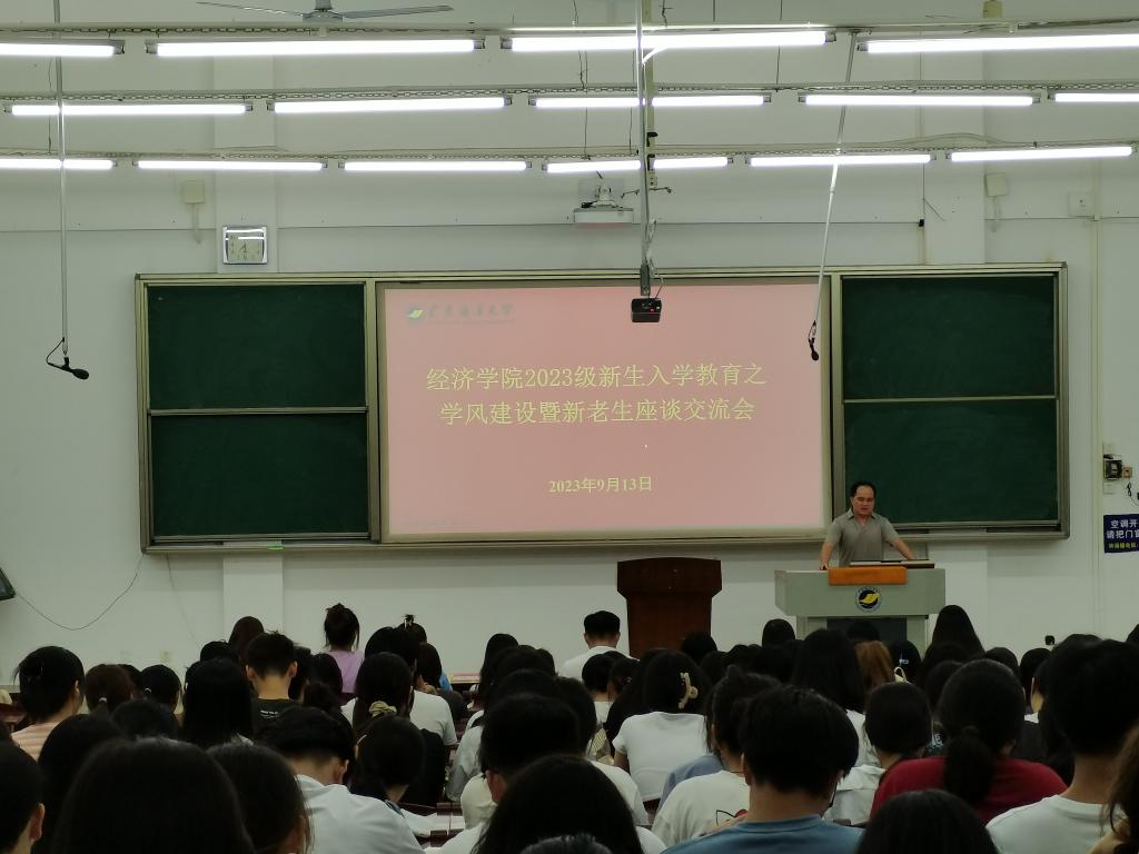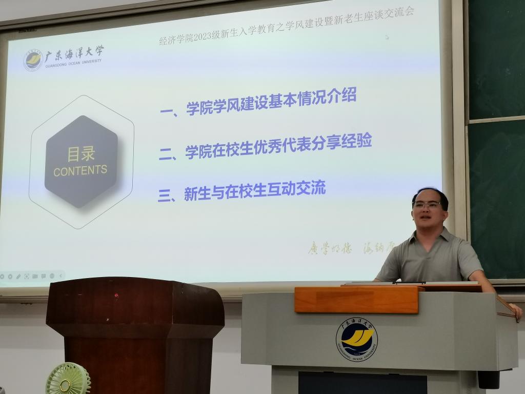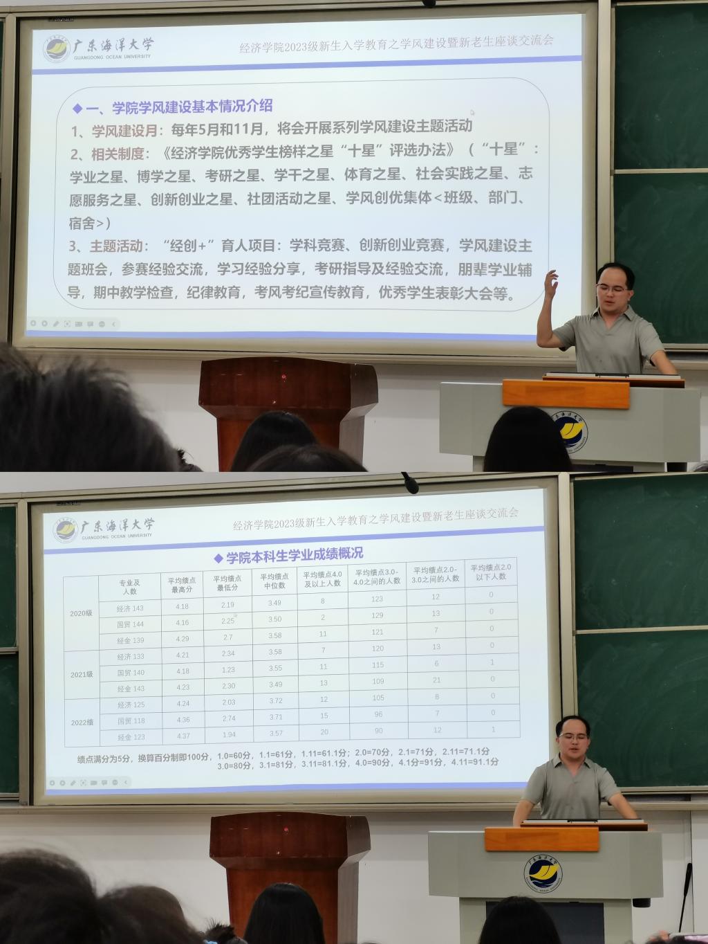 活动在温馨而庄重的氛围中开场。李文河老师致开幕辞,他强调了新老生交流的重要性,鼓励同学们要勇于分享自己的经验和成果,激励大家在学习和成长的道路上不断进取。李老师为新生介绍了学院学风建设的基本情况,详细说明了学院的学风建设月、榜样之星评选、经创+育人项目、考研指导等活动,并寄语新生:要树立远大理想,勇于追求梦想,为理想奋斗;要开拓视野,积累知识,培养解决问题的能力;要培养自主学习的能力,合理安排时间,做到工作与学习相平衡;要积极参加实践活动,培养自己的领导力和团队协作能力;要勇于探索、敢于创新,抓住每一个机会去锻炼自己、提升自己。