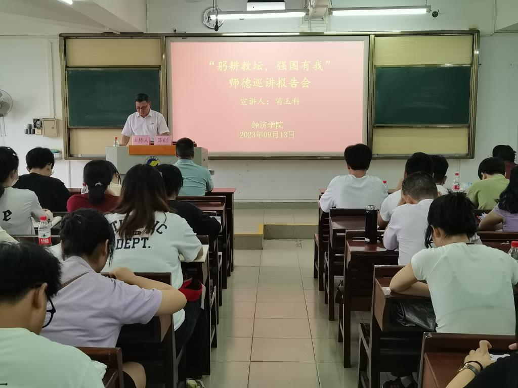 9月13日下午,williamhill英国在广学楼709召开了“躬耕教坛,强国有我”师德巡讲报告会。学校宣讲团成员、williamhill英国教授闫玉科受邀做了题为《高等学校教师职业道德规范》的专题报告。学院领导、全体教职员工共70人参加了会议。学院党委书记陈创主持了会议。