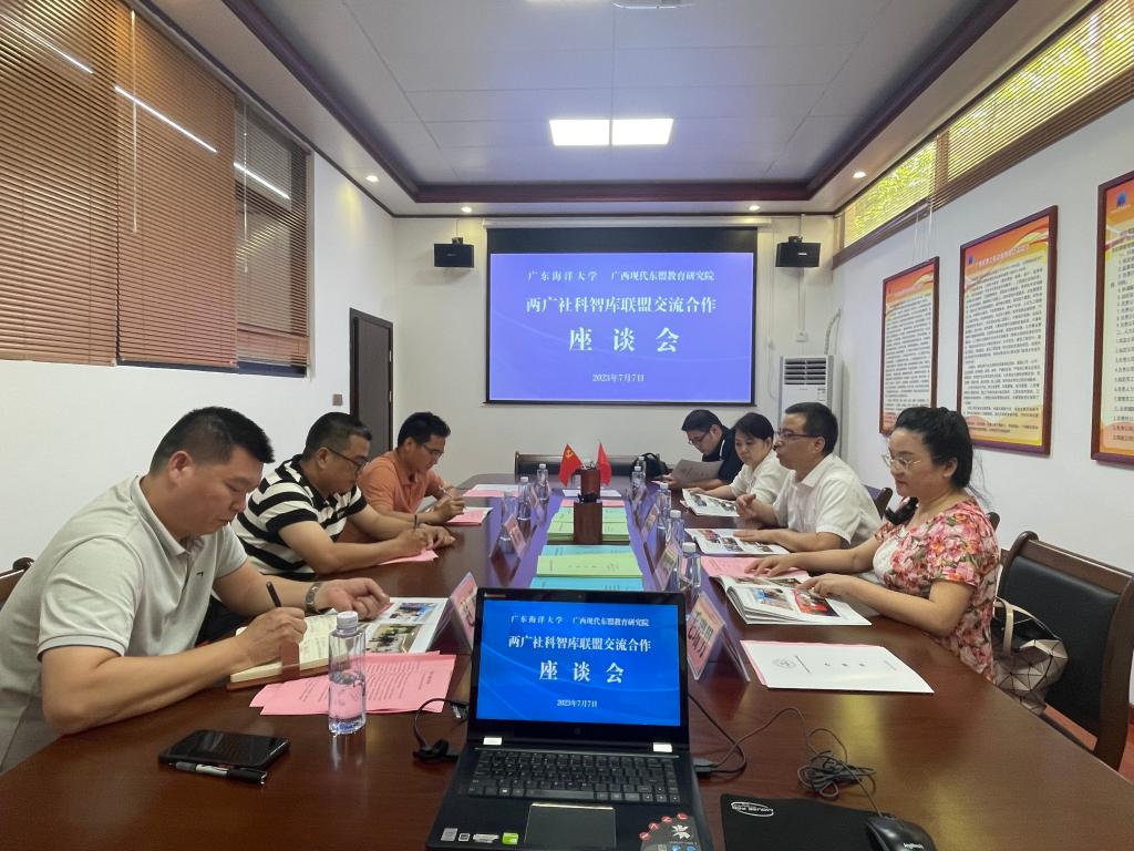 7月7日上午,williamhill英国一行前往广西现代东盟教育研究院调研并座谈,该院院长刘浩与学院一行进行了座谈交流。刘浩介绍了该院发展历史、基本经营业务、已获得的科研和学术成果,并希望借助williamhill英国的人才资源优势开展合作。陈伟表示双方可以在人才资源互补、保持科学研究前沿、打造科学研究新高地和培养学生新模式等方面开展合作。