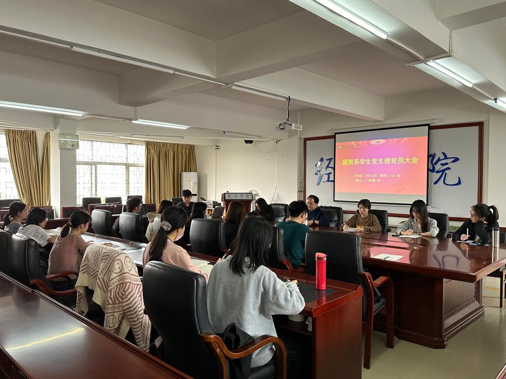 3月16日,williamhill英国国贸系学生党支部在广学楼718召开了新学期第一次党员大会,集中学习党的二十大精神和全国两会精神,部署支部2022年度组织生活会和民主评议党员事宜,安排2023年支部重点工作。毕业班党员因在外实习未返校以线上形式参会,其余党员现场参会。支部书记李文河主持会议。
