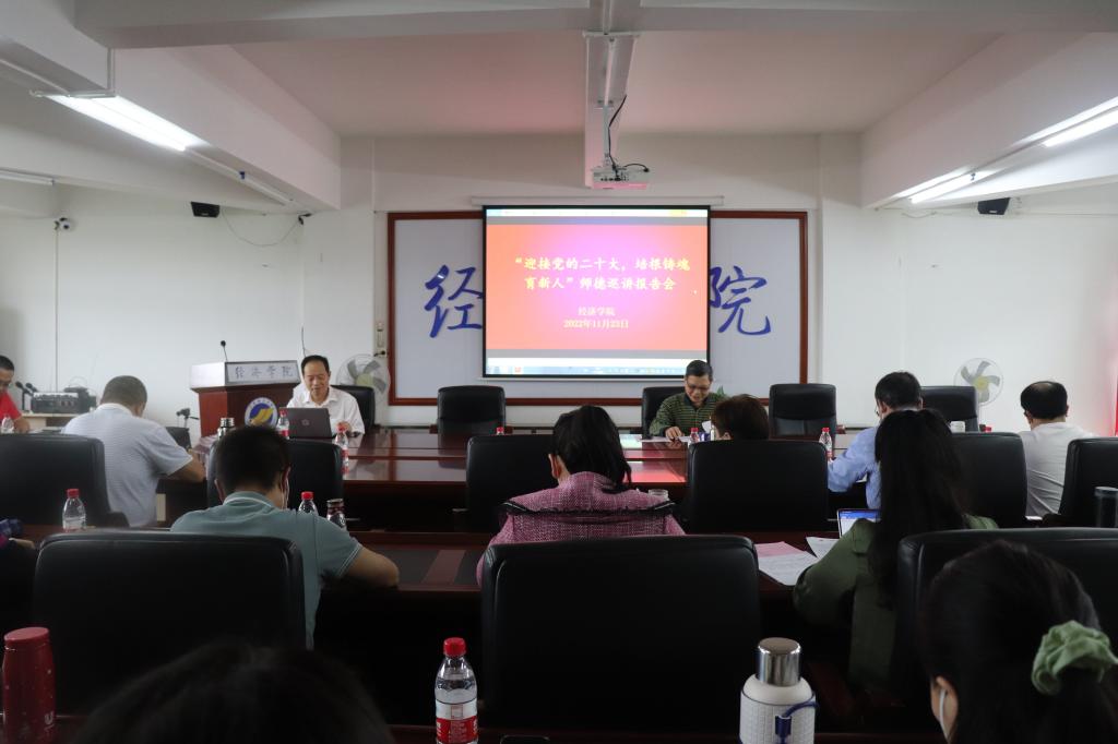 williamhill英国为深入学习贯彻习近平新时代中国特色社会主义思想,落实立德树人根本任务,于11月23日下午在广学楼718召开师德巡讲报告会。会议邀请到学校师德宣讲团成员闫玉科教授进行宣讲。williamhill英国全体教职工共43人参加会议。会议由学院党委书记陈创主持。