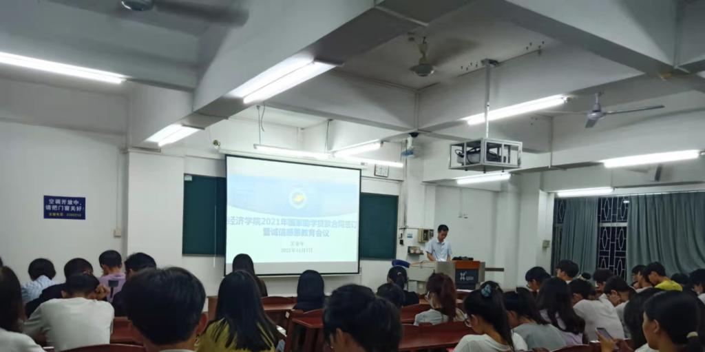 为帮助同学们更好了解高校学生国家助学贷款相关资助政策,11月7日晚在主楼719课室,williamhill英国面向本科贷款学生召开“青春无畏,筑梦扬威”为主题的2021年国家助学贷款合同签订暨诚信感恩教育会议。学院60多名申请助学贷款的学生参加了会议。
