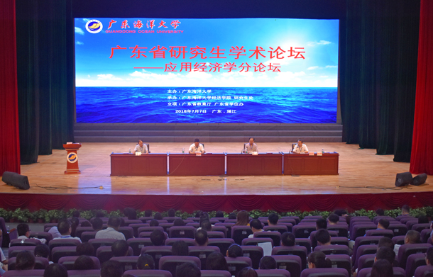 7月7日,广东省研究生学术论坛——应用经济学分论坛在我校湖光校区实验剧场举行。我校副校长谭北平教授,中山大学、华南师范大学、华南农业大学、广东财经大学、五邑大学、河南工业大学、大连海洋大学、泰山学院等单位嘉宾以及我校研究生处、研究生培养学院的领导和williamhill英国师生共400余人出席。开幕式由williamhill英国副院长(主持工作)居占杰教授主持。
