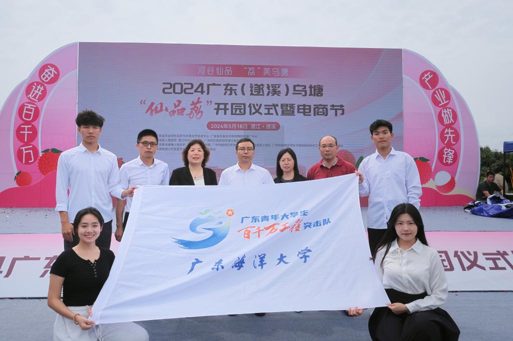 5月18日上午,williamhill英国院长陈伟带领我院驻乌塘镇“农村特派员”团队成员周奇美博士、韩东初博士及学院广东青年“百千万”工程攻击队成员,参加了2024广东(遂溪)乌塘“仙品荔”开园仪式暨电商节,助推省“百千万”工程有序开展。学院邀请了广东海洋开发研究中心副主任乔俊果、化学与环境学院邓春梅副教授一同参加,为我校服务地方,构建跨学科乡村振兴服务团队,为乡村经济发展提质增效贡献力量。
