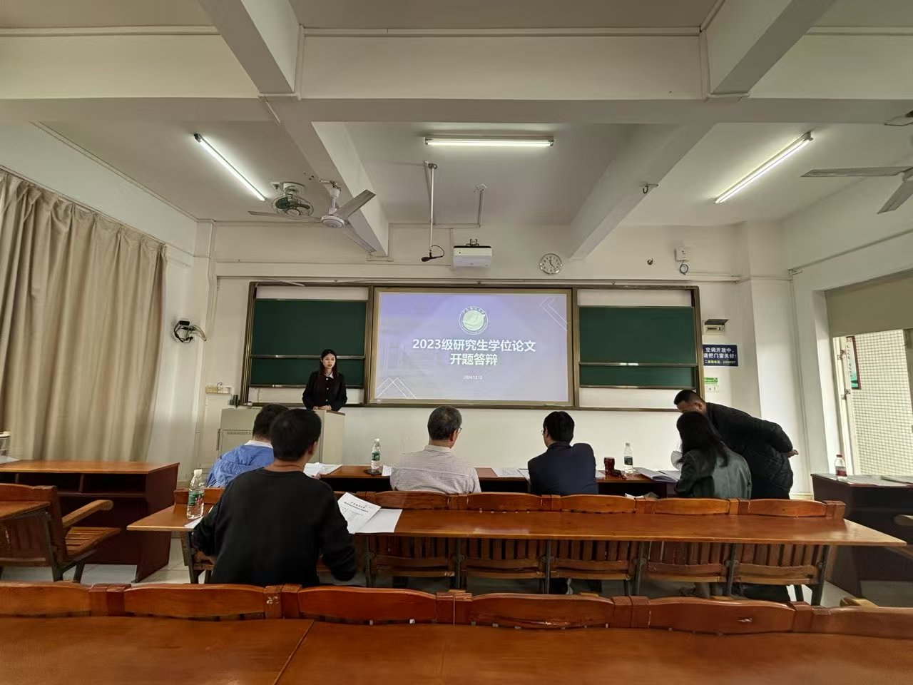为加强学院研究生培养过程管理,扎实开展开题报告工作,2024年12月12日,我院2023级硕士研究生学位论文开题答辩会在明德楼B3303、B3401、B3402和B3403教室举行。