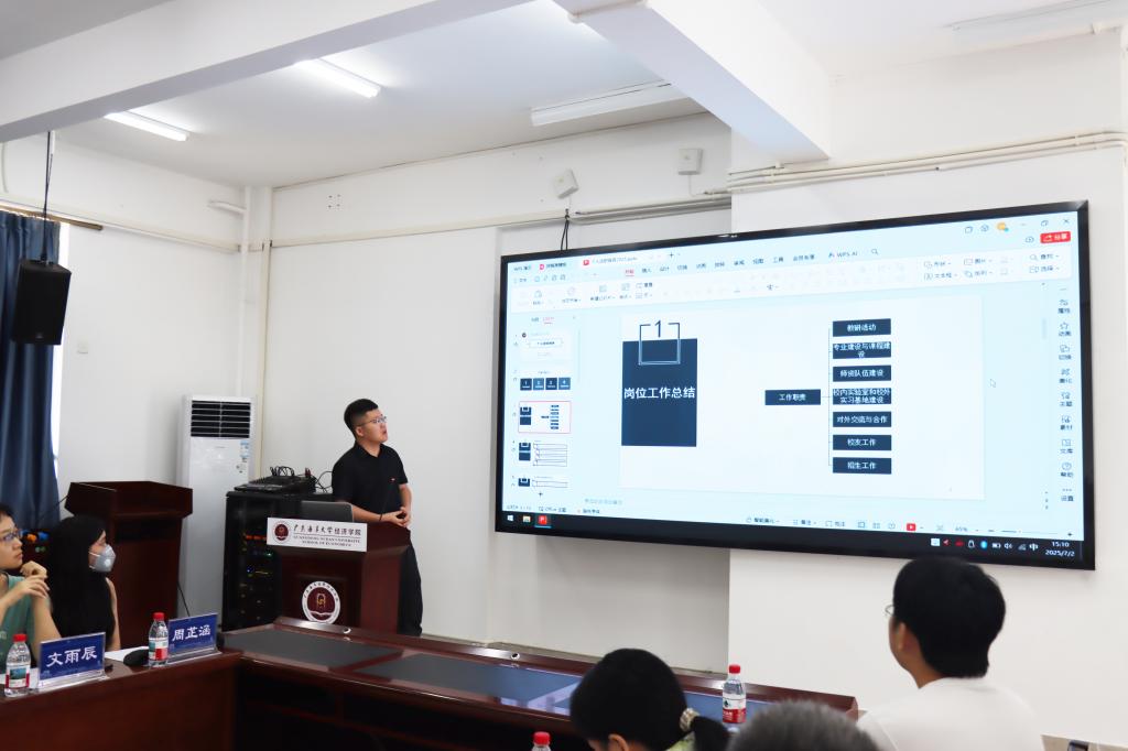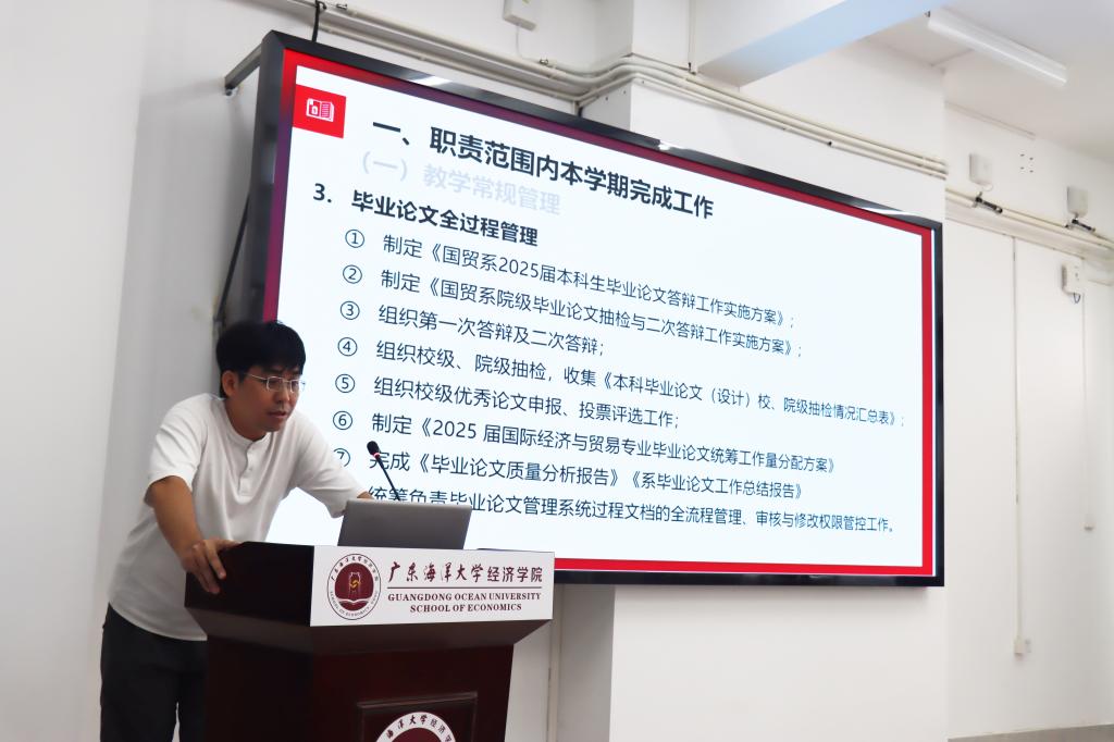 汇报结束后,参会人员对各系正副主任本学期工作完成情况进行了评分,经济系、金融系、国贸系分列第一至三名。