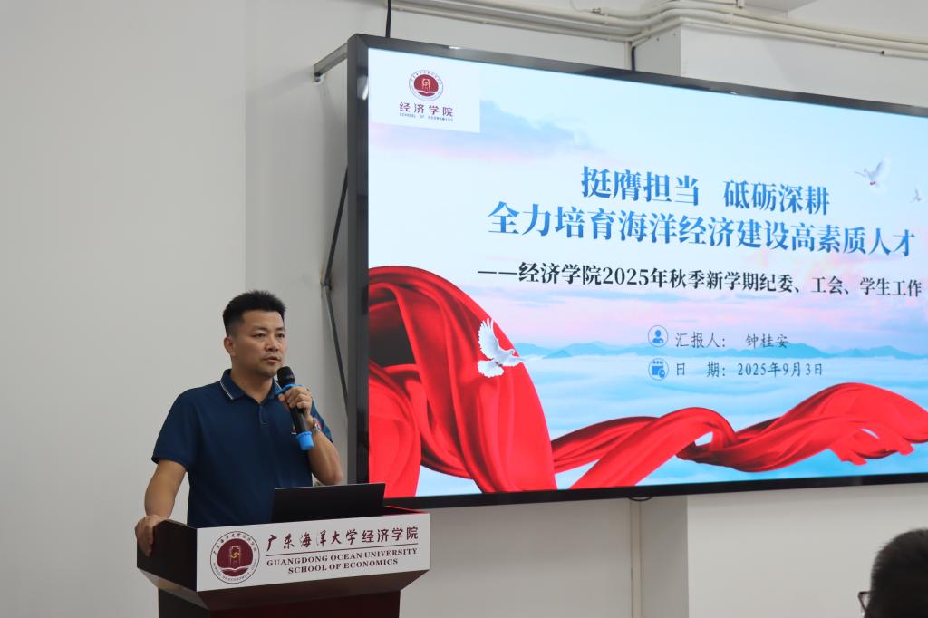 正处级辅导员、学院党委副书记钟桂安总结了上学期纪委、工会、威廉希尔的情况,并对本学期纪委监督、工会、学生思政等重点工作进行了安排。