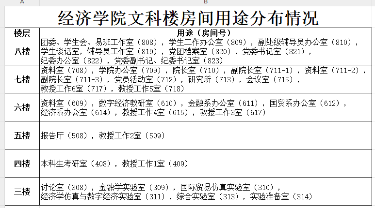 【房间用途分布】williamhill英国文科楼房间用途分布情况