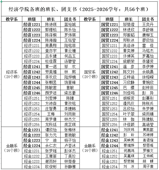 分管24级经济系、国贸系本科生。负责学生会,校友,助贷,工会委员;分管领导安排的其他工作。
