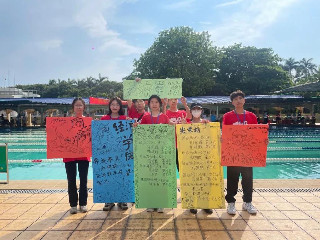 在本届游泳运动会中,我们经院同心协力,一起为游泳运动会的工作贡献自己的一份力量,克服重重困难,在游泳运动会中取得优异的成绩。老师的关怀,运动员的付出不可或缺。我们把握当下、放眼未来,在明年夏天与你再战海大游泳运动会。