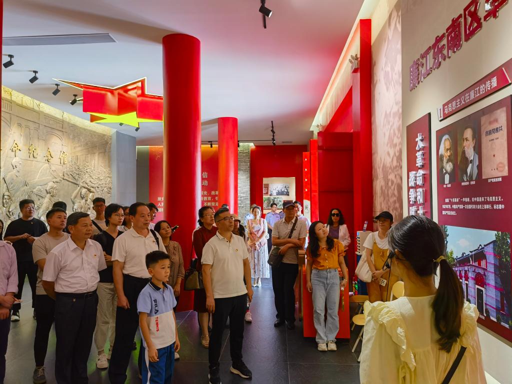 走进中共红色教育基地中塘革命纪念馆内,在讲解员的引导下,全体人员参观了“中塘概况”、“抗日斗争烽火”、“解放战争风云”等多个展板,聆听了革命先烈英雄事迹,瞻仰英烈的遗物和图片,了解在这片红色土地上的南路革命历史、廉江革命历史、良垌革命历史和中塘革命历史,接受爱国主义教育和英烈精神的熏陶。