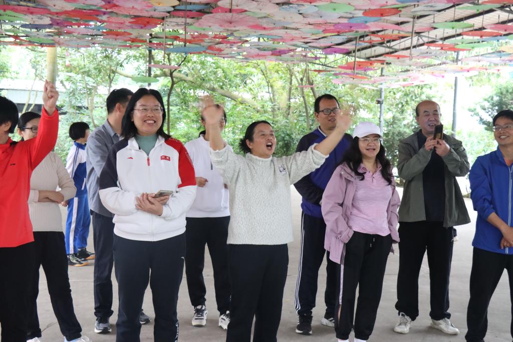 随后,经热身运动,拔河比赛、跳长绳和“心心相印”等项目准时开始。首先点燃了大家热情的是拔河比赛;接着跳长绳比赛在欢呼声中展开,教职工在挑战极限中释放青春活力;毽子投准环节,每次精准投掷都引发了大家欢呼声与掌声;“心心相印”环节,团队成员通过面对面拥抱方式,步调一致共进退,齐心协力。活动全过程既展现了教工的体力、耐力和意志力,也强化了团队精神和集体荣誉感。