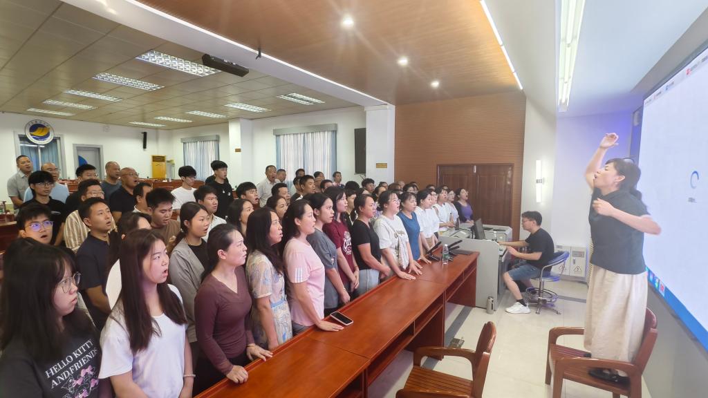 会议将“红歌忆峥嵘,向海谱华章”2025年师生合唱比赛筹备作为核心议题重点推进。自7月起,在学院党委统筹指导下,工会已提前启动筹备工作:一方面广泛动员教职工参与,有序组织多轮集中排练;另一方面全力做好后勤保障,不仅高效协调排练场地、筹备各类物资,还完成舞台服装的采购,为比赛顺利推进筑牢基础。过程中,工会主席、委员及各工会小组长主动带头参与,充分调动教职工积极性,营造出“全员参与、共唱党歌校歌”的浓厚氛围,积极响应学校校园文化建设号召。