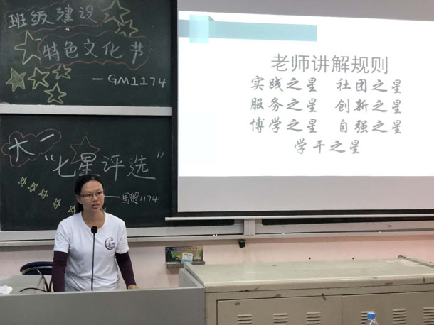辅导员祝敏丹老师对大一“七星评选”活动进行介绍