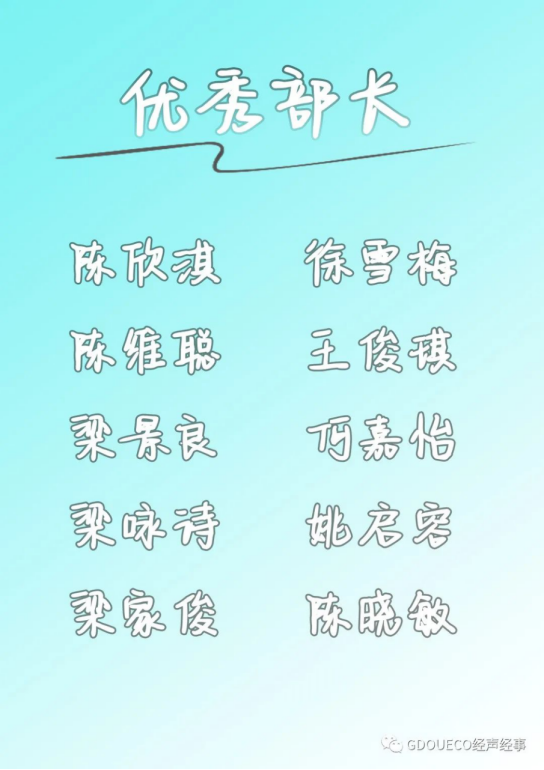 表彰以下干部,在他们任期内带领学院团学获得先进基层团委、先进基层学生会。