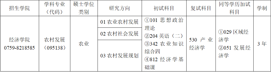(二)农业硕士(专业学位)农村发展领域(095138)