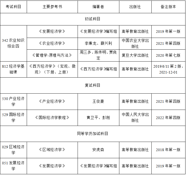 (二)考试科目代码及名称:342农业知识综合四(2025年10月9日已更新《发展经济学》考试内容)