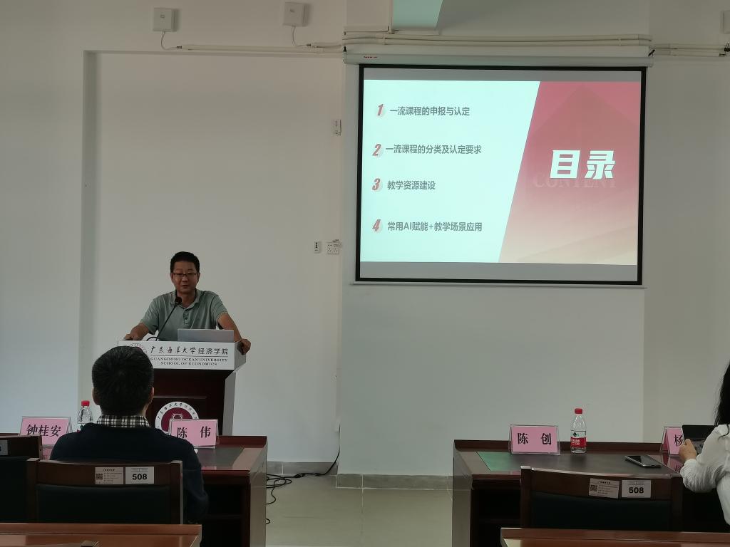 广东力拓科技有限公司李育苗经理结合工作经验,向与会老师分享广东省一流课程申报与认定的经验。李经理从一流课程的申报与认定条件、一流课程的分类及认定要求、一流课程的教学资源建设、常用AI赋能+教学场景应用等四个方面出发,对一流课程申报与认定的系统流程、具体环节、资源准备、时间节点等进行详细说明。