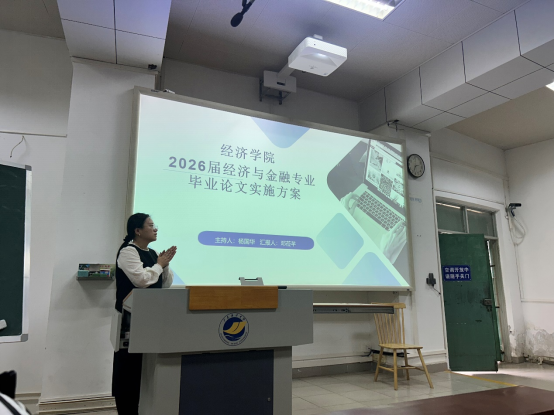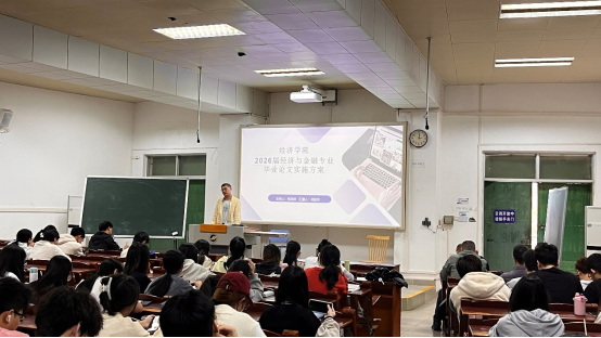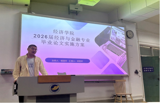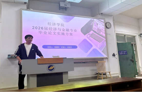 2025年10月22日下午,金融系在广学楼330教室组织召开2026届本科毕业论文与毕业实习动员大会。金融系主任杨国华、副主任邓莅芊、全体论文指导教师及2026届经济与金融专业本科生参加会议。会议由系主任杨国华主持。