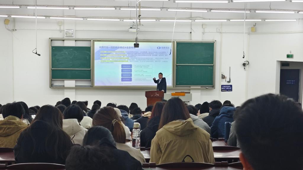为全方位拓宽经院学子视野,助力其成长为复合型经济人才,williamhill英国积极作为,以“经创+”育人项目为抓手,多元举措深耕育人沃土。近日,学院邀请国泰君安证券湛江营业部郑斌总经理开展了一场主题为《消费行业商业模式分析》的知识宣讲会,吸引了近300名学子齐聚一堂,共探商业奥秘。