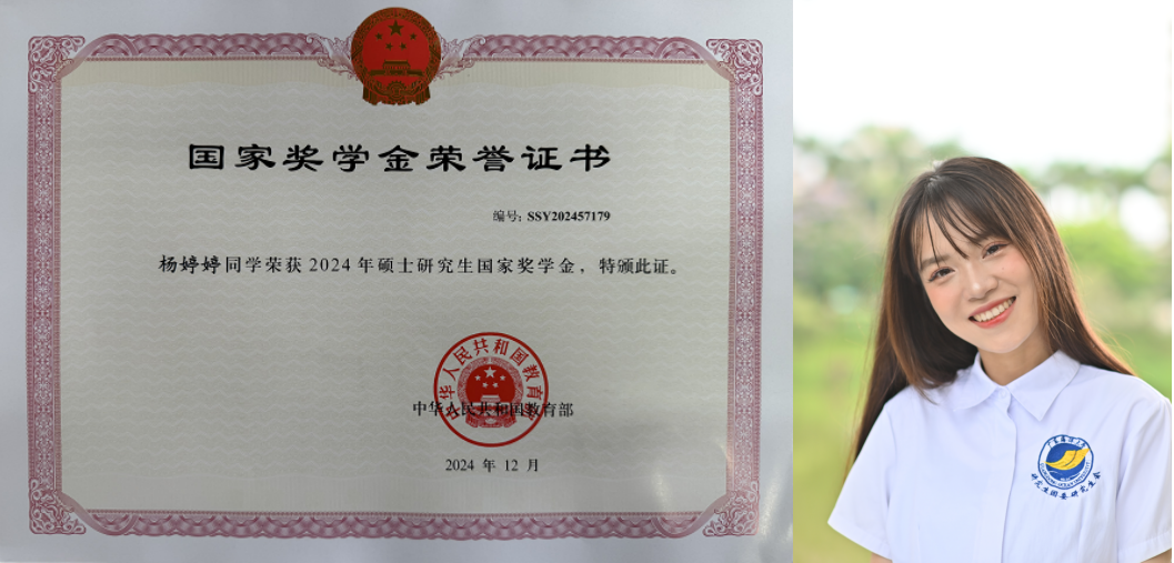 近日,2024年度研究生国家奖学金证书陆续下发。我院毛伟副教授指导硕士研究生王伟、梁贝贝和杨新华教授指导的硕士研究生杨婷婷脱颖而出,荣获2024年度硕士研究生国家奖学金。