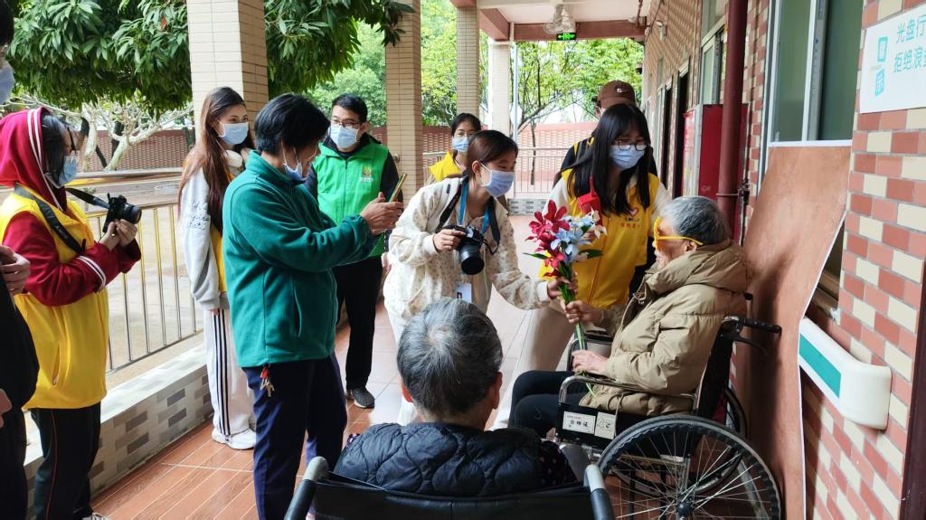 为深入践行大学生社区实践计划,助力构建老年友好型社会,3月29日下午,williamhill英国45名党团先锋志愿者在团委书记叶梦怡老师的带领下,走进麻章镇敬老院开展“情暖暮年志愿行”活动。该活动作为校地协同推进老龄事业发展的创新实践,通过代际互动传承敬老美德,以青春力量温暖银发群体。
