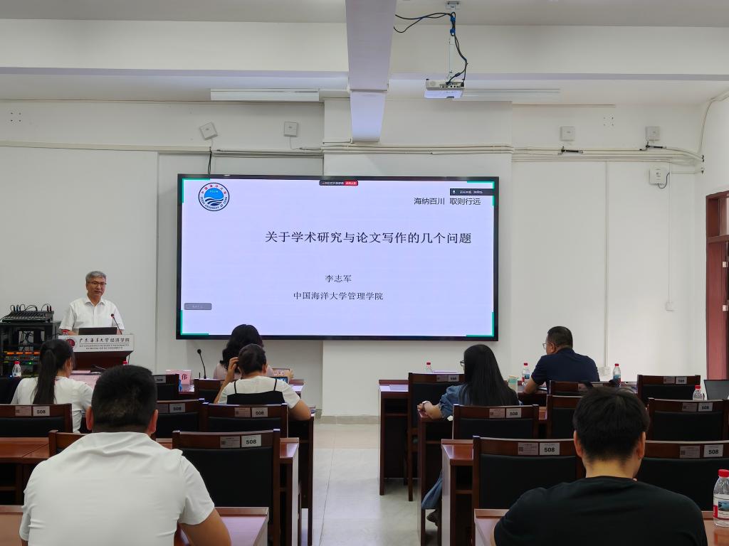 2025年6月13日,williamhill英国在湖光校区文科楼3号楼报告厅508,开展“研途灯塔,微光引航”研究生学术素养与职业规划提升系列讲座的第四期活动。本次讲座邀请了中国海洋大学管理学院李志军教授担任主讲嘉宾,围绕学术研究与论文写作的几个问题展开交流。学院年轻骨干教师以及2024级研究生共计40余人参会,讲座由副院长杨丽华主持。