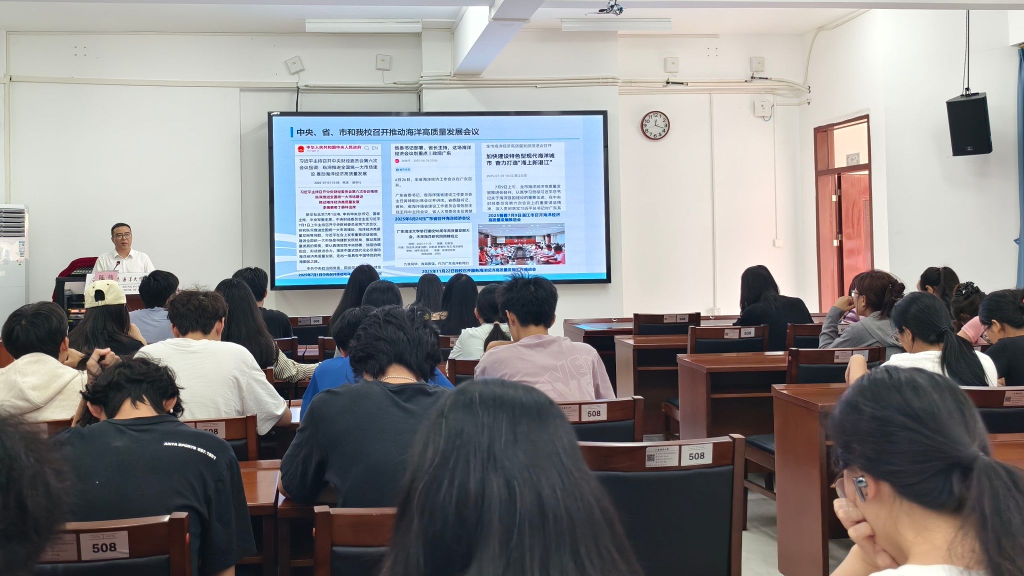 陈伟对同学们提出了三点希望。一是深化思想认识,将向海图强内化为家国情怀,牢记“海洋强国建设,青年必有作为”。二是找准实践路径,参与“三下乡”调研、海洋产业实习,在社会实践中增长才干。三是强化行动自觉,带头弘扬“经世济民”院训,在服务社会中展现青年担当。
