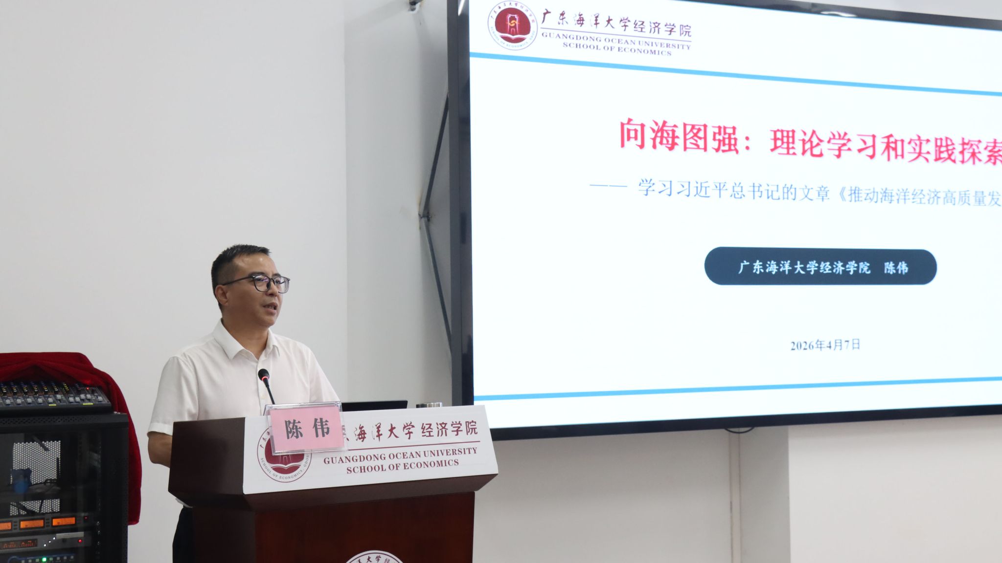 首先,陈伟带领学生深入学习习近平总书记重要文章《推动海洋经济高质量发展》的核心要义,强调海洋经济是我国突破发展瓶颈、重塑区域格局的关键变量,并勉励青年学生将个人理想融入国家发展大局。随后,他阐释了经略海洋的深厚历史渊源和新时代的战略定位,阐释了海洋经济高质量发展的辉煌成就、战略意义以及“五个更加注重”总体思路和六大重点任务。然后,他进一步分析了我国海洋经济发展的现状以及面临的四大挑战,指出这些挑战既是国家发展的必答题,也是青年学子施展才华的主战场,鼓励学生以创新思维推动产业升级。最后,他讲解了williamhill英国在海洋经济领域取得的成效,从教学育人、科研创新、社会服务等方面展示了学院海洋经济领域取得的成果,鼓励学生参与海洋科研与社会服务。