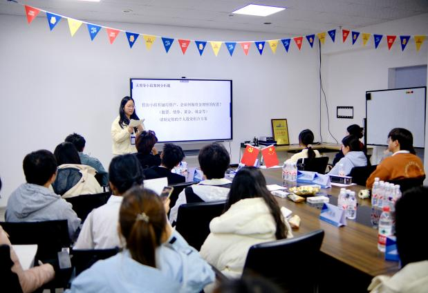 在专业讲师的指导下,同学们分组对“拥有10万原始资本该如何进行资产配置”进行讨论。同学们需要快速分析用户画像,做出对应的资产配置方案。现场讨论气氛热烈,本次讨论并无对错之分,同学们通过现有工具查询了解,并与专业带教老师讨论,共同得出各自小组的资产配置观点,并选派小组代表进行阐述。通过该讨论话题,同学们活学活用现有知识点以及现场国泰海通导师们分享的内容,提出了贴合实际的配置方案,得到了企业导师的高度认可。
