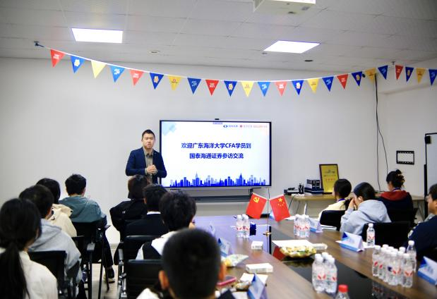 参访伊始,同学们受到了国泰海通湛江营业部负责人郑总的热烈欢迎。在简短的欢迎仪式上,郑总通过企业宣传片和生动讲解,介绍了公司的发展历程、企业文化以及在行业内的领先地位,瞬间拉近了同学们与国泰海通证券的距离。