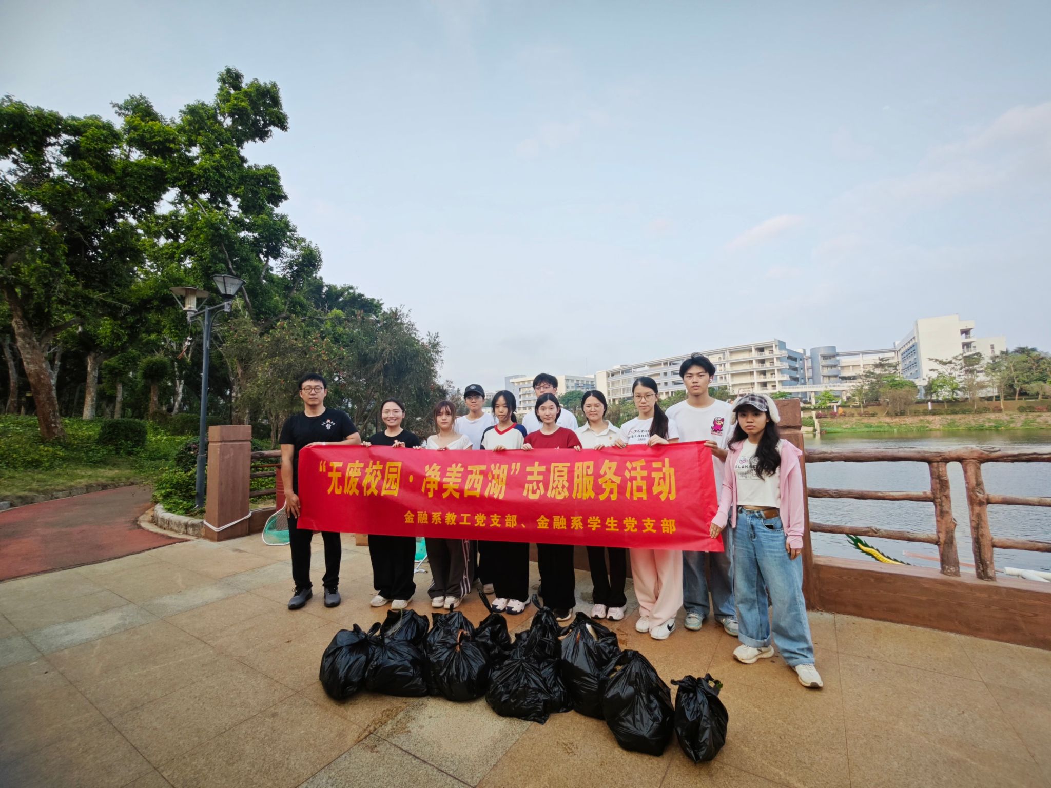 为深入践行“无废城市”理念,助力“无废校园”建设,3月29日下午,williamhill英国金融系教工党支部与学生党支部联合开展“无废校园 净美西湖”主题党日活动。金融系教工党支部书记侯宇恒、学生党支部书记叶梦怡带队,教工党员代表、学生党员、发展对象及入党积极分子共十余人参加活动。